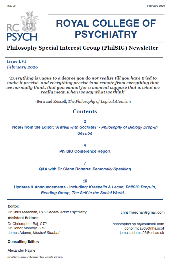 - Conference highlights - Summary of the 2025 PhilSIG Annual Conference, covering major talks on autonomy, responsibility, neurolaw, diagnosis, and the role of philosophy in psychiatric practice.